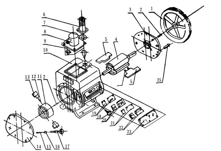 如被抽除的氣體中含有較高的蒸汽氣體時,在氣體受到壓縮而其蒸汽的分壓強超過此蒸汽在泵內溫度下的飽和壓強時,此時蒸氣被壓縮成為液體,旋片式真空泵無法排出,而混在真空油內,使泵的性能大大降低。如果摻入適量的空氣,使蒸汽在受到壓縮時,其分壓強也低于泵溫的飽和壓強,則蒸汽在變成液體前就能被排出泵外去,故本系列2X-4以上的旋片式真空泵都裝有能放入一定量氣體的摻氣閥11見圖(1)。