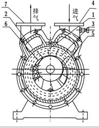 SZ-3及SZ-4SZ水環(huán)式真空泵,若要求真空度流量在不大的范圍內(nèi)變動,可用進(jìn)氣口的大小來調(diào)整,空氣經(jīng)過真空度調(diào)節(jié)閥(7)(圖五、圖六)進(jìn)入泵的進(jìn)氣室。
